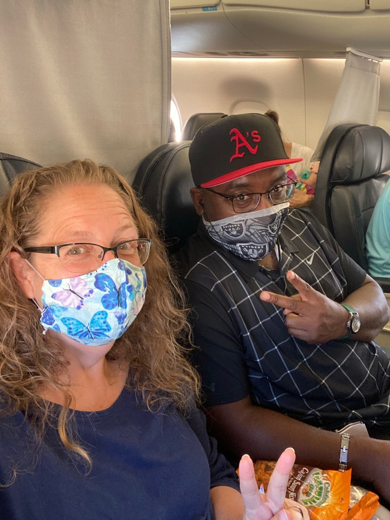 We got to the airport at 330pm and it was empty. Security check point; empty! One of the perks to flying during a pandemic; no one else is. Is that a sign? Hmm, perhaps, but here we go. Our flight was at 1/2 capacity. Everyone on Alaskan Air was super friendly. Everything looked and smelled extra clean (which I feel it should always be anyway, even if we’re not in a germ pandemic), go ahead – dump all those chemicals into a locked up vessel, we are good to go!! I’ve got the “hospital grade hepa filter” recycled air vent blasting above my head. Will this shower me with germs, or swoosh germs away? I guess we will find out! It makes me feel better though to have it blasting. This isn’t our first flight during the pandemic, we flew to Oregon a few months ago as a trial run, and everything went ok that time, so fingers crossed, nostrils shut, masks on…And breathe….sort of…