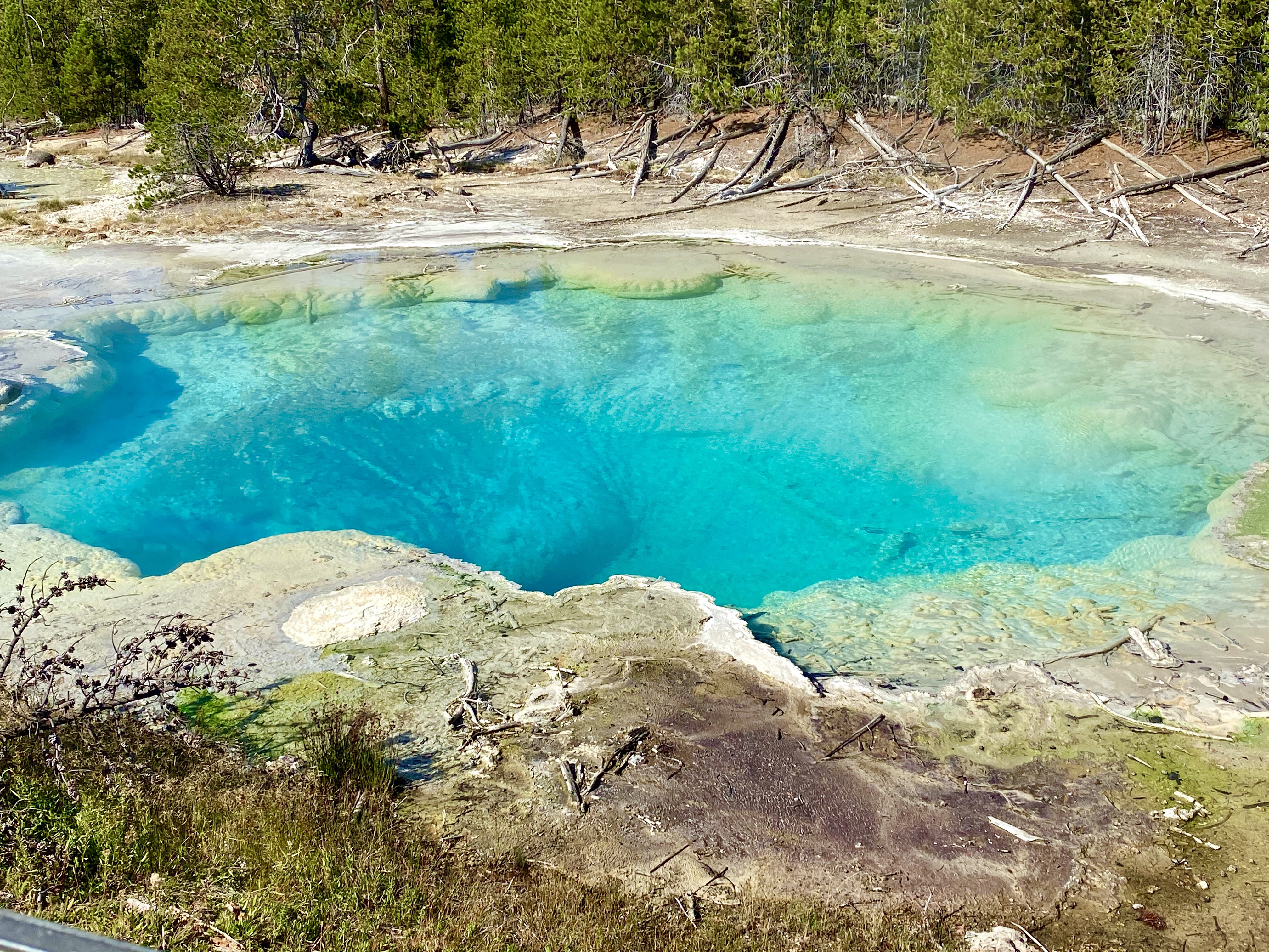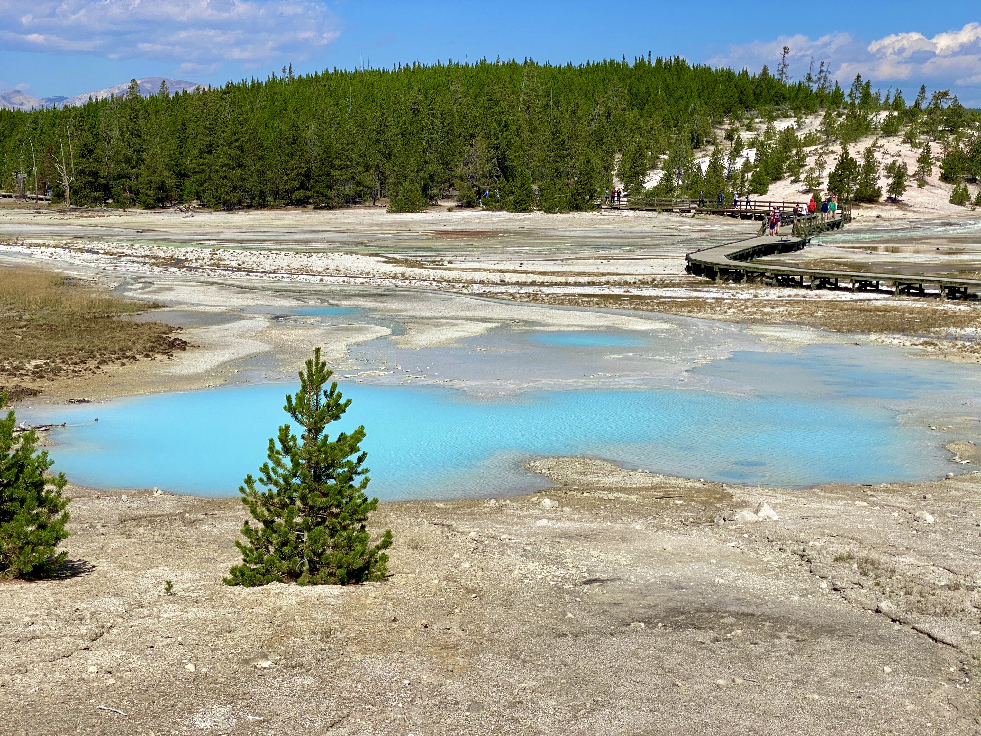 The main attraction, as we make our way through Yellowstone today is Norris Geyser Basin, which includes the Big Basin and Porcelain Basin hikes. If you choose to see it all, it’s a little over 3 miles, but if you are short on time you can also do smaller little loops too. We decided to do all the loops and it was worth every step. You will see some of the bluest blues and so many shades of green; a true feast for the eyes!!