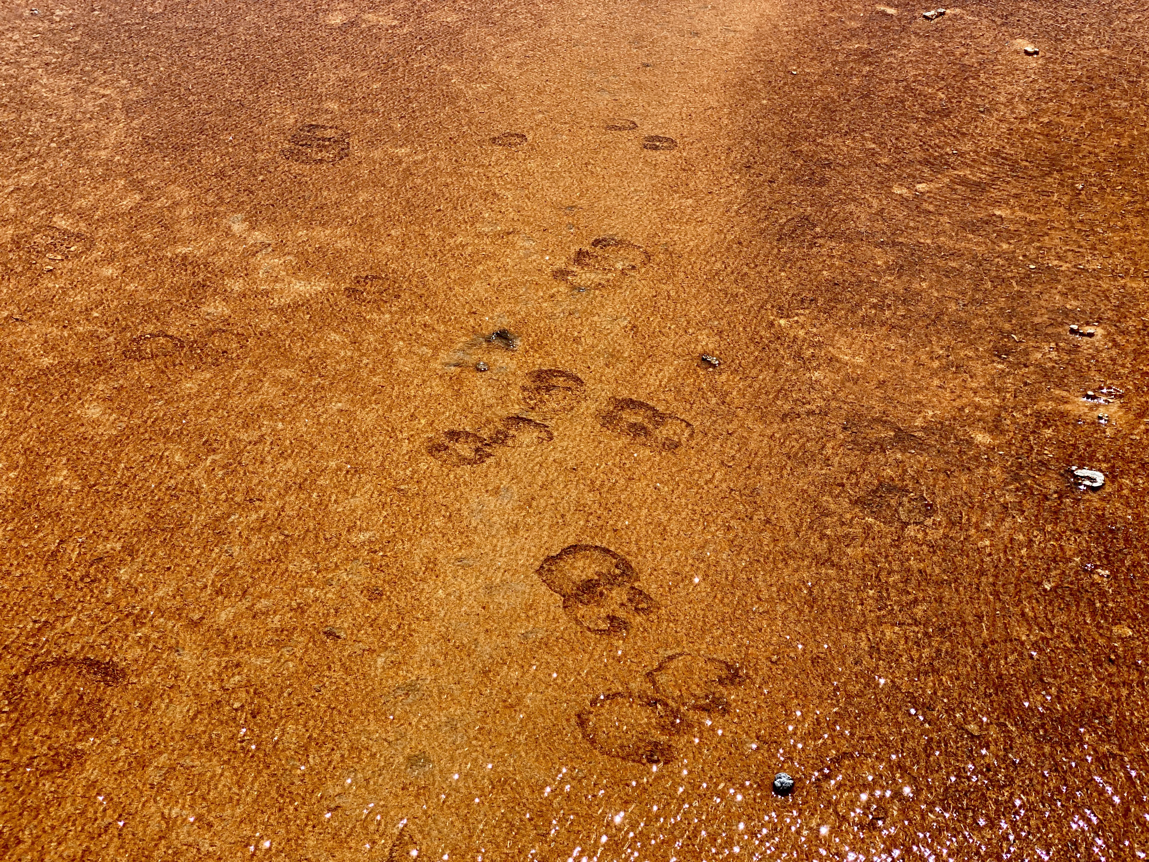 Then back on the Grand Loop Road and headed towards the Grand Prismatic Spring. This is probably one of the most colorful Springs and when photographed from above (FYI, this is a no drone zone) you can see just how grand it is, however from our ground level view, it’s not as noticeable, but still spectacular. We saw bison hoof prints in the mud along the wooden path, it’s hard to imagine them walking through there. Maybe this is where they go for a mani pedi spa day, haha!