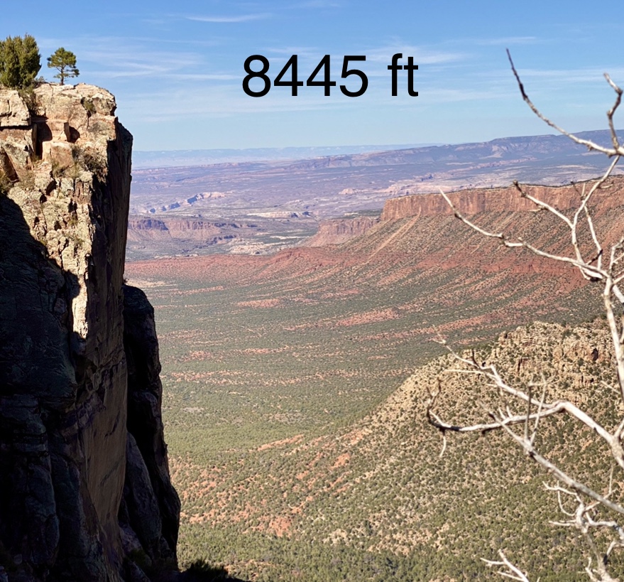 The next stop was a lovely scenic drive to Bull Canyon Overlook, and more dinosaur tracks. This was worth the drive up the mountain, with easy access to several footprints by a Theropod dinosaur (one with hollow bones and 3-toed limbs). These ones date back to 200 million years ago when the area was a shallow sea. This is hard to believe when you figure we were 8445 feet from the valley floor. Don’t forget to check out the overlook too, by heading to the right of the parking lot and wind through the brush to the overlook. It’s quite amazing.