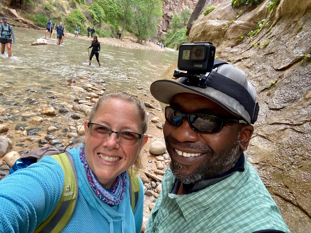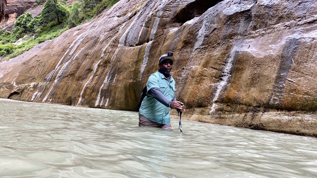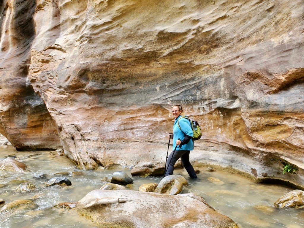 We started walking into the river. I must have stopped and started 3 to 4 times trying to enter the river at different spots to see which one was the best route to take. Every step was calculated and thought out. We made it to the other side of the river, and I started feeling a little more confident. Time to regroup. The hike itself is 8 miles, rated strenuous and so our plan was to go in as far as we felt comfortable going, knowing we would have to trek back out the same way we came in.