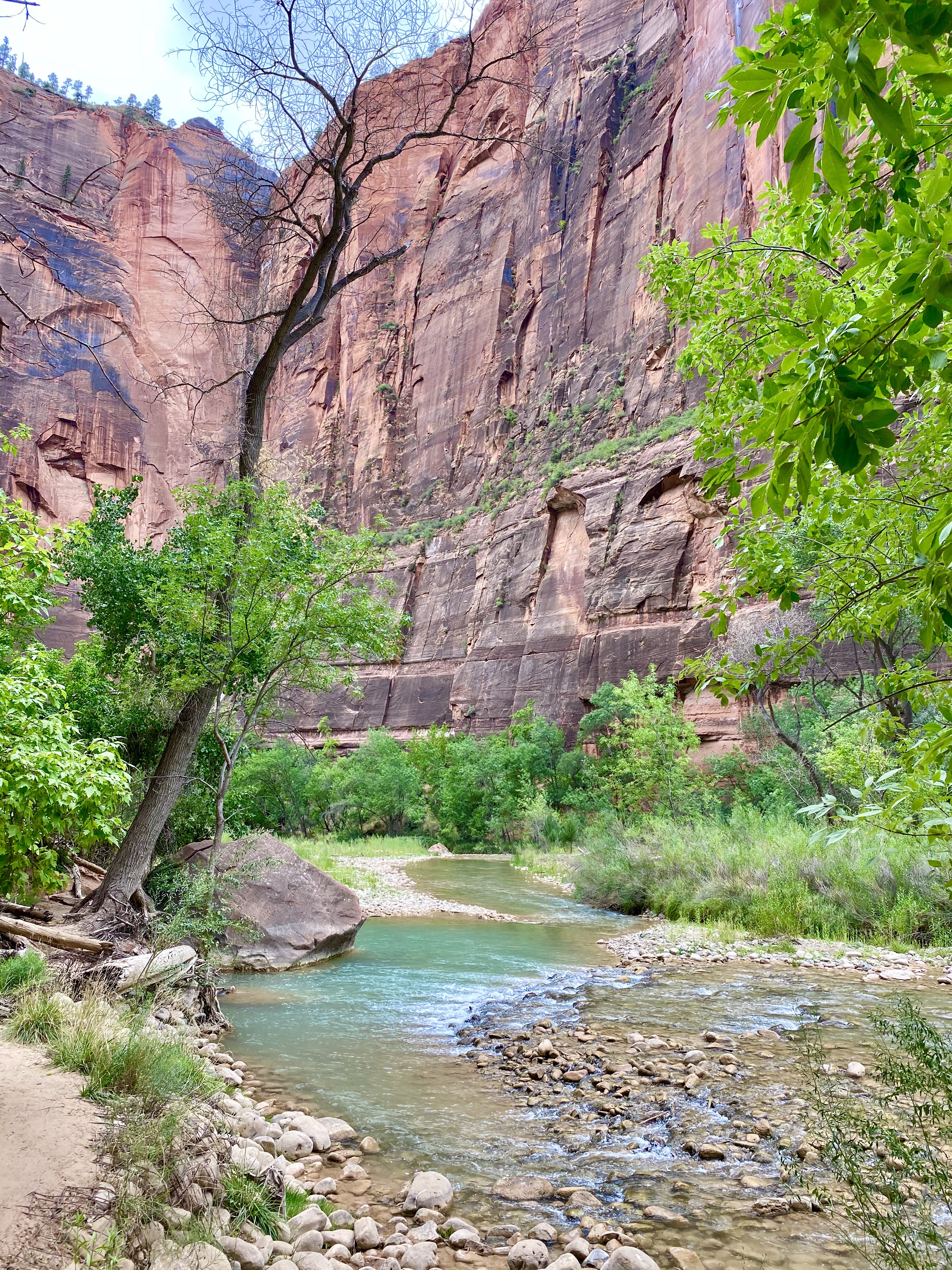 Once at the Temple of Sinawava, we started the 1 mile trek on the nicely paved pathway to the mouth of The Narrows. It’s such a beautiful walk, so even if you don’t want to do The Narrows portion, it’s worth the stroll.