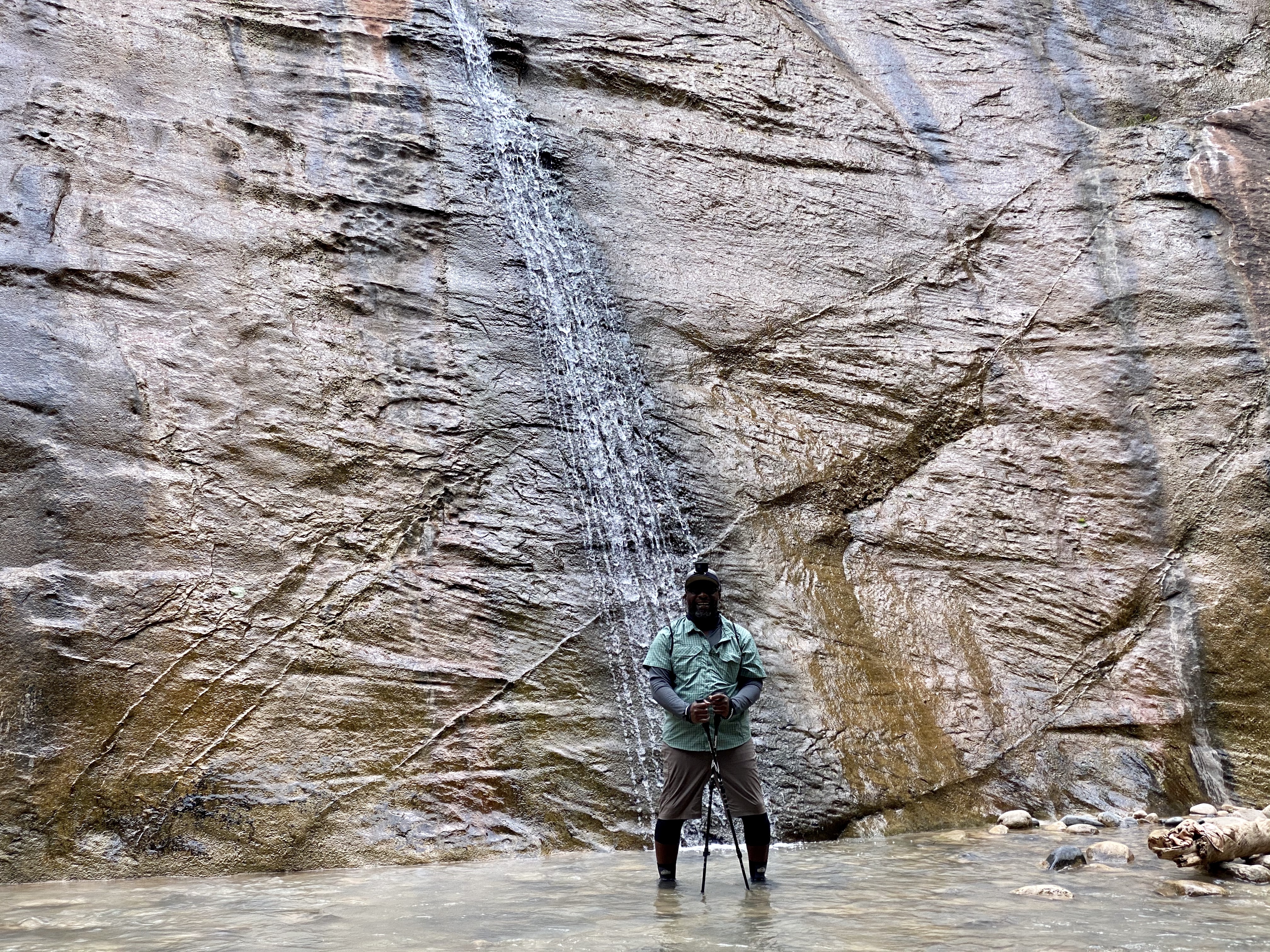 We got to the second shuttle line, with the hoards of people, and boarded the shuttle. Shuttles are running at half capacity right now so things were taking a little longer than usual. We wanted to take the shuttle to the “Temple of Sinawava”, the last stop on the route, and where The Narrows trailhead begins.