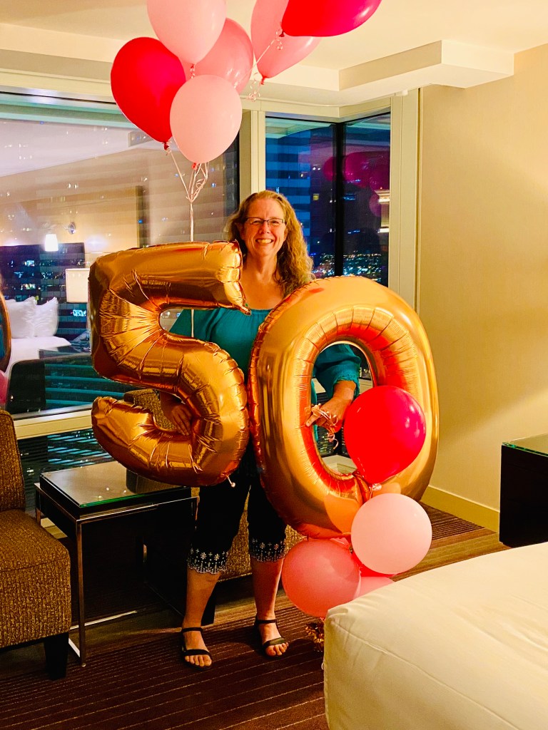 When we made it back to the hotel, there was a huge “50th” bouquet of balloons waiting for me in the room from my friend Kaff. I nearly cried! It was the boost I needed after an emotionally tough day! I am extremely grateful for the team of friends and family I have around me. Beyond words!!